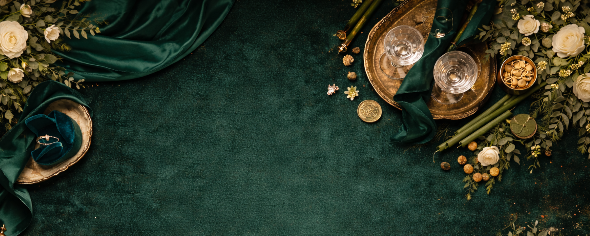 This is for the bride who loves rich, timeless details and believes elegance never needs to be loud. The Emerald Éireann Collection was designed for celebrations that feel elevated, intentional, and beautifully styled—where deep emerald tones, soft gold accents, and subtle Irish-inspired elements come together in perfect harmony.