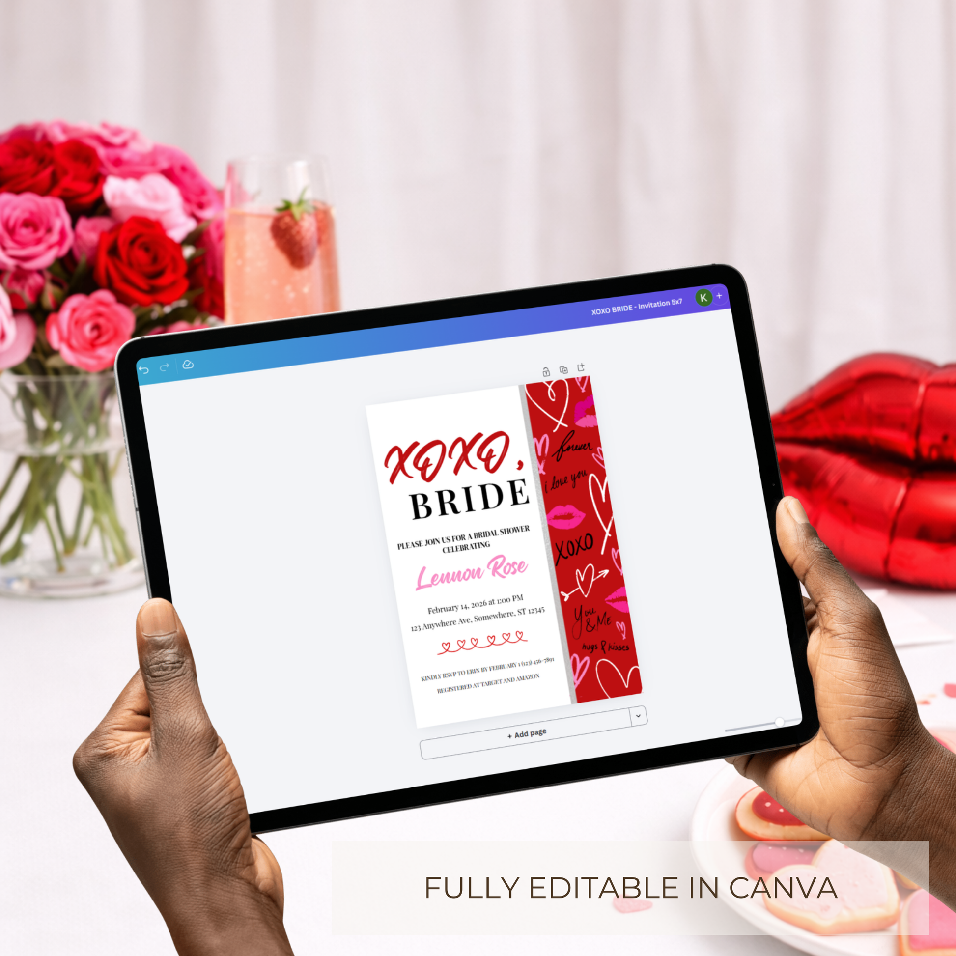 Bold, playful, and unapologetically fun—XOXO, Bride is a Valentine-inspired bridal shower invitation designed for the modern bride who loves statement style. Featuring vibrant red and pink tones, flirty brush lettering, and clean editorial typography, this design sets the tone for a chic, unforgettable celebration.